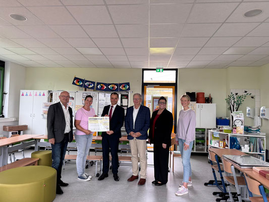überreichten die Spende an die Lehrerkolleginnen Frau Koch und Frau Radu.
