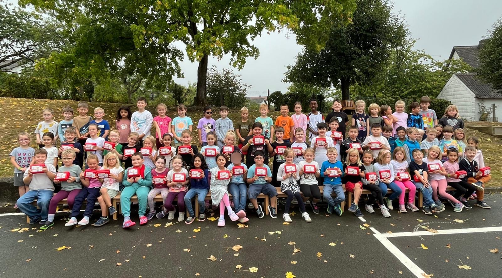 Am Freitag, den 20.09.24 war es dann endlich soweit. Bei bestem Spätsommerwetter versammelte sich die Schulgemeinde sowie die Vorschulkinder der Kindertagesstätten „Habakuk“ (Löhnberg) und „Kleine Strolche“ (Niedershausen) auf dem Schulgelände. Pavillons wurden aufgestellt, die Laufstrecke abgesteckt und die Straße abgesperrt, um einen ungestörten Ablauf sicher zu stellen. Nach gemeinsamem Aufwärmen fiel um 9:00 Uhr der erste „Startschuss“. Zunächst begaben sich alle Kinder der Klassen 3 und 4 auf die Laufstrecke. Nach jeder Runde steuerten die Läuferinnen und Läufer den eigenen Klassenpavillon auf dem Schulgelände an, wo ein Bändchen über den Arm gestreift wurde. So hatten alle jederzeit einen Überblick der gelaufenen Runden. Natürlich konnten die Sportlerinnen und Sportler an ihren Klassenstationen kleine Pausen einlegen. Dank der großen Obstspende des Rewe Marktes – Mario Kramer aus Löhnberg sowie einer Wasserspende der Selters Mineralquelle Augusta Victoria GmbH, konnten die Kinder sich nach jederzeit stärken. Viele Eltern, Großeltern und Freunde hatten an diesem Tag sich auch auf den Weg zum Falkenflug gemacht, um die Läuferinnen und Läufer anzufeuern und das Kollegium zu unterstützen. Über den gesamten Streckenverlauf wurden die Aktiven immer wieder von Kindern oder Erwachsenen angefeuert. Auch eine entsprechende Musikuntermalung spornte zusätzlich an.